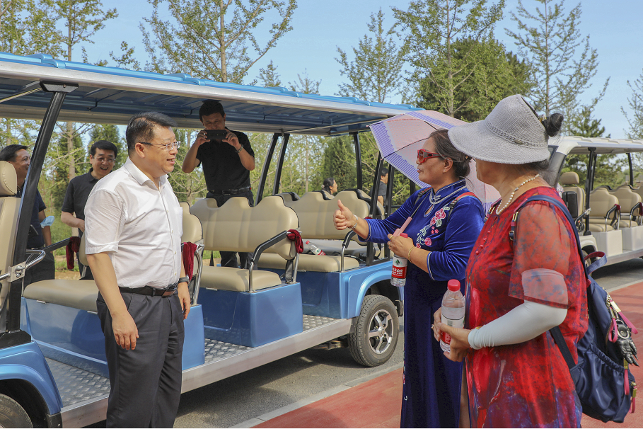 溫榆河公園朝陽公園開園儀式上。北京市政府副秘書長陳蓓、北京市水務(wù)局局長潘安君、北京市溫榆河公園協(xié)調(diào)小組成員單位相關(guān)領(lǐng)導(dǎo)在開園儀式上乘坐綠友新款14座電動(dòng)觀光車。當(dāng)天下午,朝陽區(qū)委書記王灝乘坐綠友觀光車到示范區(qū)進(jìn)行調(diào)研,并與游客親切交談。綠友新能源售后服務(wù)人員駕駛領(lǐng)導(dǎo)專用車服務(wù)活動(dòng)全程。