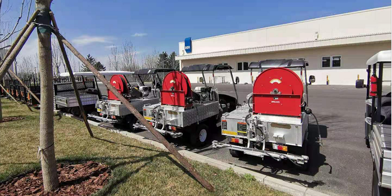 還有南京珍珠泉景區(qū),訂購(gòu)的定制貨斗巡邏車。北京環(huán)球影城度假村簽訂的電動(dòng)噴霧打藥車,為園區(qū)開(kāi)園前的草坪綠化養(yǎng)護(hù)使用。還有即將交貨的蘇州金雞湖高爾夫球場(chǎng)L20電動(dòng)高爾夫球車?;葜葙沐悸糜味燃俅逵嗁?gòu)的鋰電池工作車。