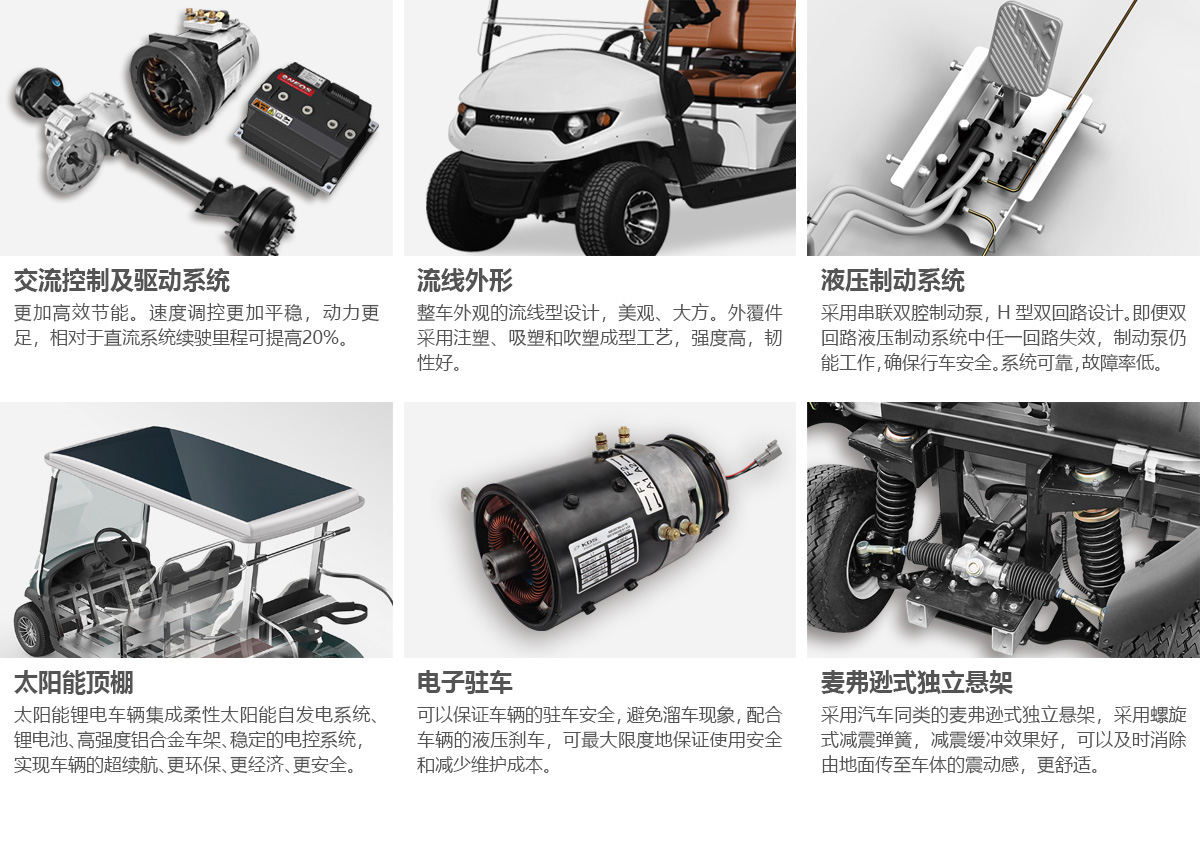 六座接待車性能穩(wěn)定、操控輕便, 實用于高爾夫球場、大型游樂園、高檔酒店等。